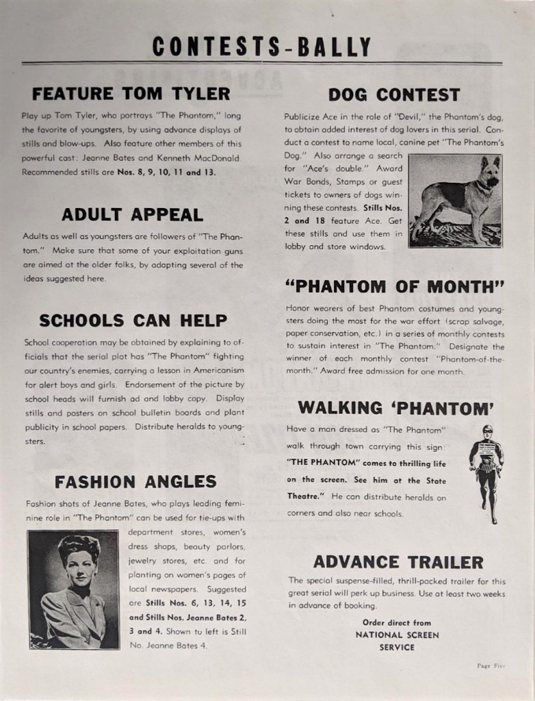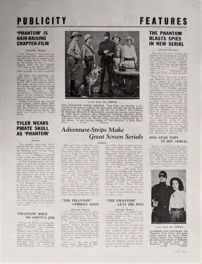 The serial also features Jeanne Bates as the Phantom’s girlfriend Diana Palmer, and Ace the Wonder Dog as the Phantom’s trusty German shepherd Devil (who is a wolf in the original comic strip).