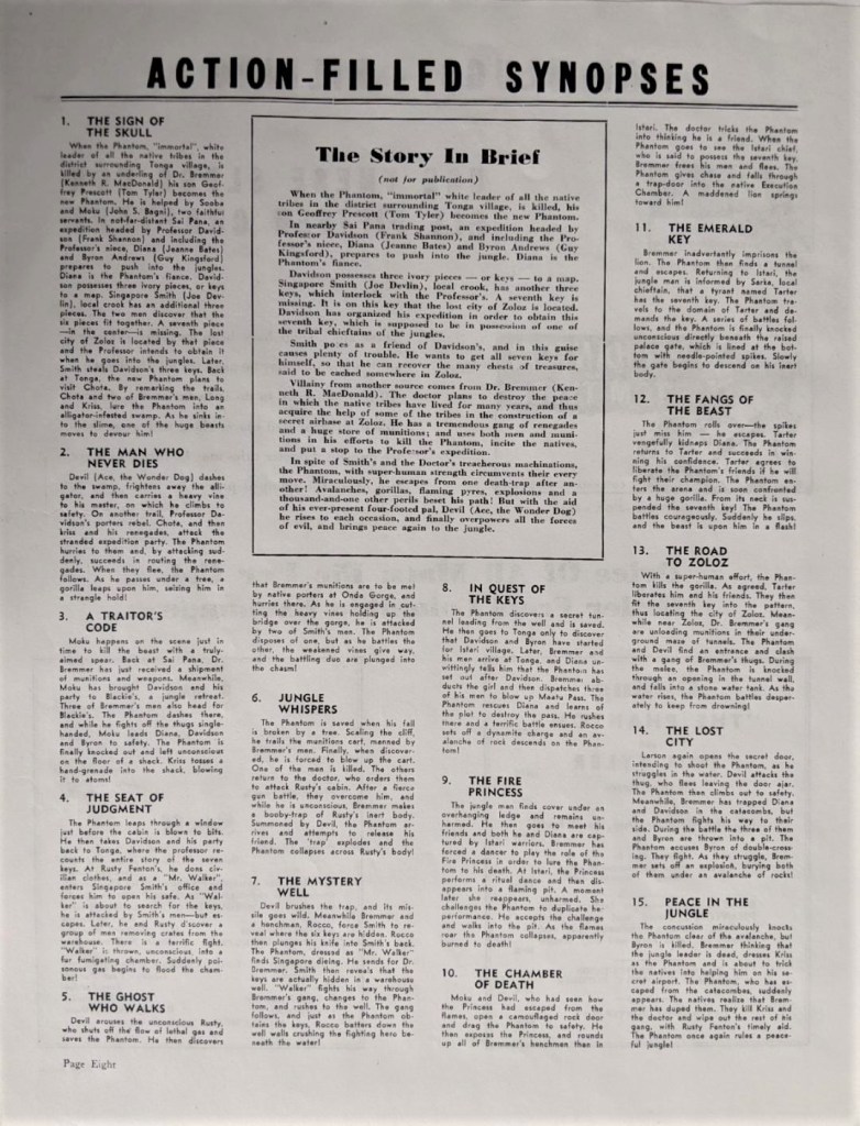 Professor Davidson plans an expedition to find the Lost City of Zoloz. The location of the city is contained on seven pieces of ivory, three of which Davidson already possesses. Doctor Bremmer, however, intends to find the lost city and use it as a secret airbase for his unnamed country. To remove him as an obstacle, he kills The Phantom, only for his recently returned son, Geoffrey Prescott, to inherit the family identity and take over the mantle of The Phantom.