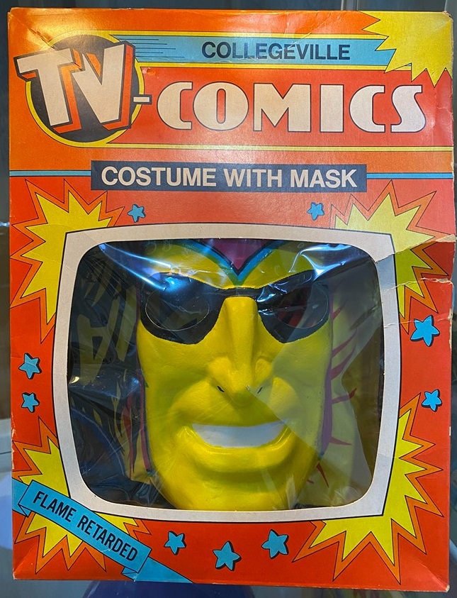 These packs generally included a costume (normally made of plastic) and a full face mask which kids wore when ‘trick-or-treating’.