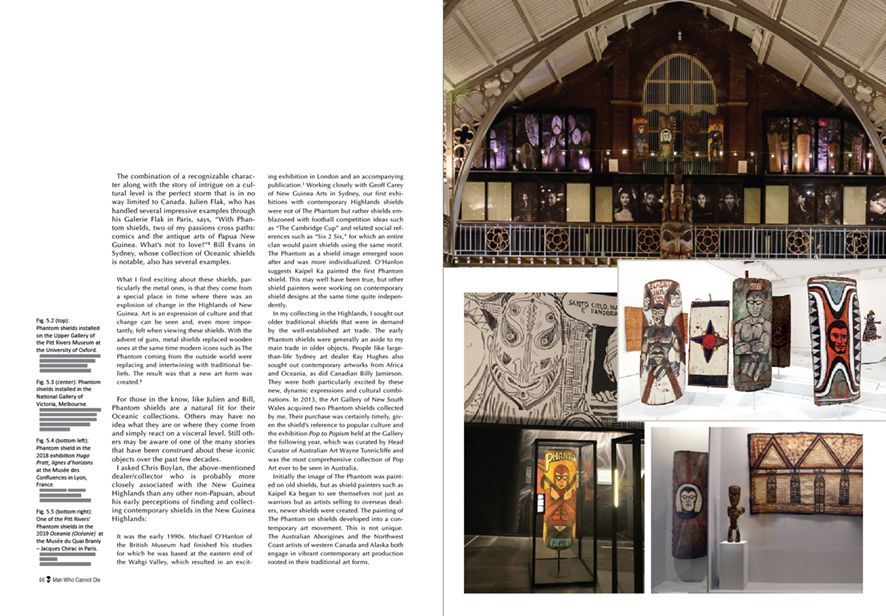 Released on the 24th of February, 2021 is a hardcover book focusing on Phantom shields found in Papua New Guinea titled Man Who Cannot Die: Phantom Shields of the New Guinea Highlands.