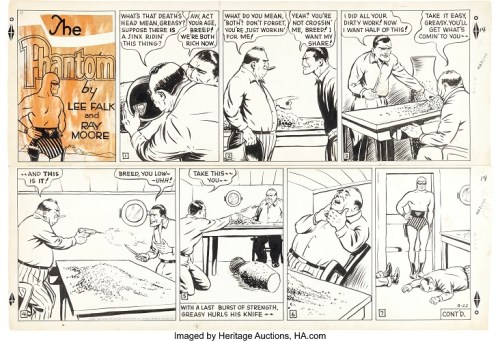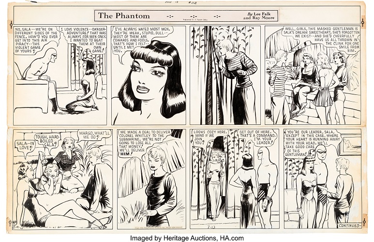 Currently open for bidding on the Heritage Auctions website, we see two original Ray Moore Phantom comic strip art for sale.