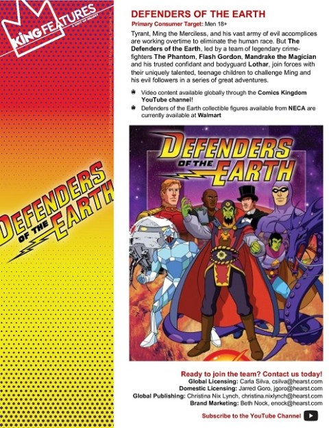 We now see King Features Syndicate offering Defenders of the Earth as an option to syndicate the characters found within the team-up under one agreement. This concept gives those who wish to create products such as merchandise, comics, animation, etc. an amazing opportunity to feature all characters together, without the need to take out separate licenses and production agreements.