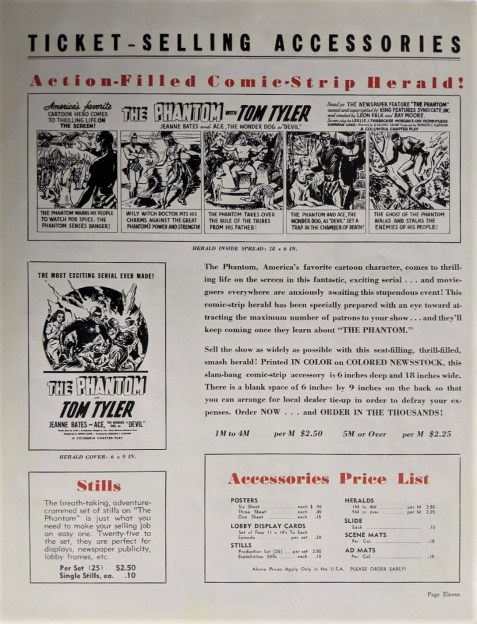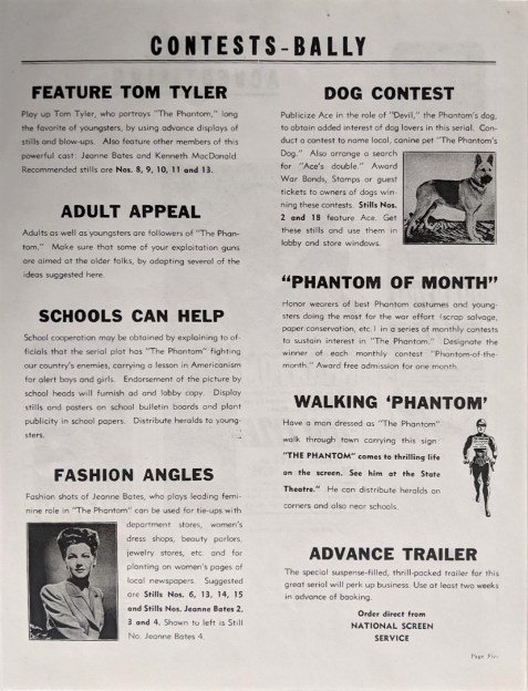 The Phantom Serial was extensively promoted by Columbia Pictures, with a Press Book produced and distributed to theater owners in the US. The Phantom Serial Press Book features an abundance of campaign information, including production information, pictures of lobby cards and posters as well as details about other promotional activities. The Press Book can be seen below.
