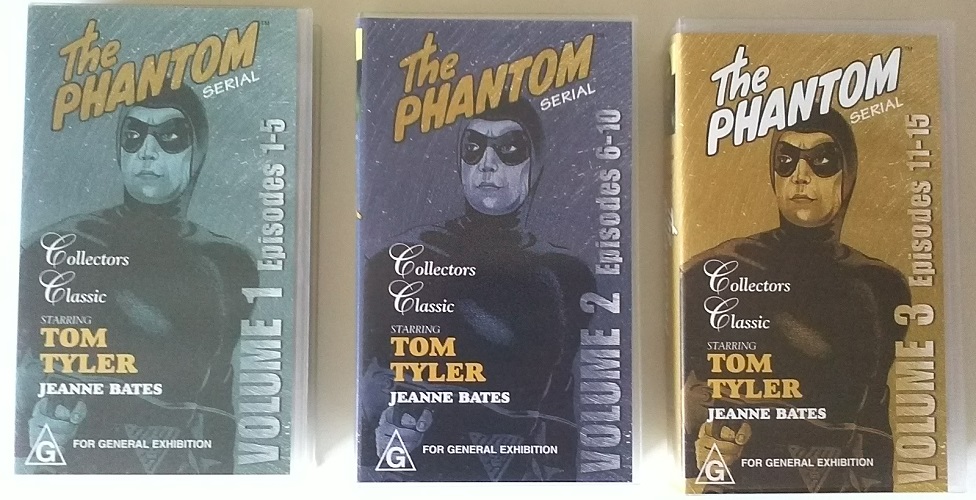 The Phantom Serial would later be released by a variety of companies for home viewing on VHS and DVD formats. Below are examples of these versions, released in countries such as USA and Australia.