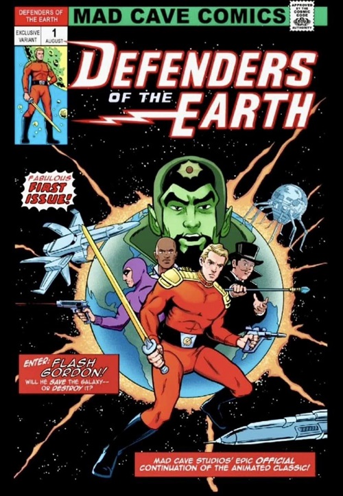 This exclusive variant is the 4th variant cover for Mad Cave Studios Defenders of the Earth comic book edition number 1. The other 3 covers can be seen below. Cover 1A (seen below left) is illustrated by Jim Calafiore, cover 1B (seen below center) is illustrated by Djordje Djokovic and cover 1C (seen below right) is illustrated by Andy Clarke.