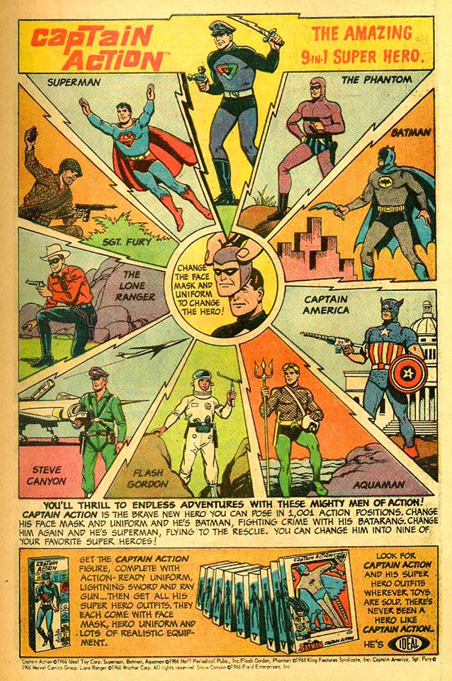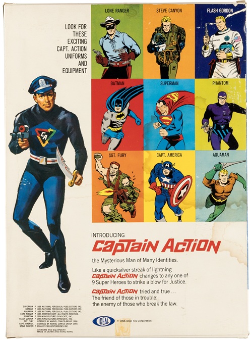 The Captain Action figure was first introduced by the Ideal Toy Corporation in the United States during the spring of 1966. This action figure was conceived as a direct competitor to Hasbro’s highly popular 12-inch GI Joe. Rather than adopting the military theme prevalent among other action figures of the era, the Ideal Toy Corporation opted to center their action figure on comic book characters and television heroes.