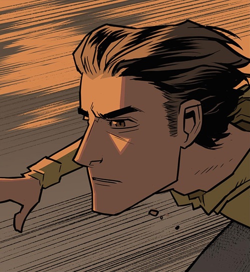 The webcomic begins with Carlos Osorio running through the Jungle carrying the Phantom’s costume being chased by three Androids, eventually coming to the edge of a cliff with nowhere else to run.