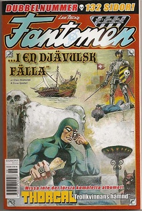 The artwork was featured on the front covers of the comic books Fantomen, Fantomet, and Mustanaamio in 2008. Presented below is the front cover of edition number 6-7 of Fantomen comic book, which was published by Egmont Kärnan in 2008.