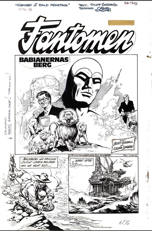 César Aurelio Spadari (1938-2020) was an Argentinian artist celebrated for his extensive and highly respected tenure illustrating the Phantom, primarily for Team Fantomen which are published in Sweden and other European countries. From 1987 until his final story in 2019, Spadari illustrated over 90 Phantom stories and multiple covers. He also had a notable career in the Argentinian and European comics industry, working for various publishers and even acting as an agent connecting Argentinian artists with foreign markets.