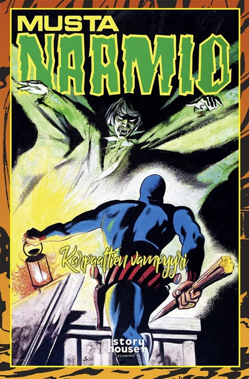 The front cover design of the above comic book follows those published in previous years also by Egmont Story House. Below on the right is ‘Mustanaamio: Karpaattien Vampyyri‘ published in 2023, and on the left is ‘Mustanaamio: Kaksoisolento‘ published in 2024.