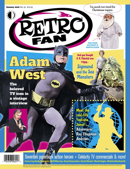Published by Raleigh, North Carolina-based TwoMorrows Publishing, RetroFan is a bimonthly magazine that serves as a vibrant, full-color publication of 1960s, ’70s, and ’80s pop culture which was launched in 2018. The magazine contains a mix of topics and subject matter, ranging from vintage television and movies to toys and fads. Also included are editorial style features and columns from pop culture experts, covering topics such as Saturday morning cartoons, classic sitcoms, monster movies and celebrity interviews.
