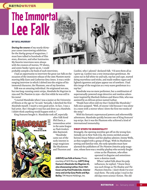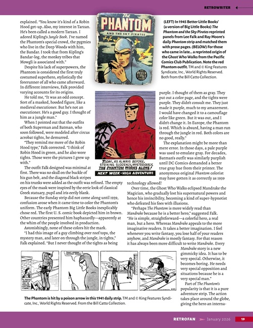 RetroFan Magazine, published by the United States-based TwoMorrows Publishing, will contain an editorial feature on the Phantom and his creator, Lee Falk.