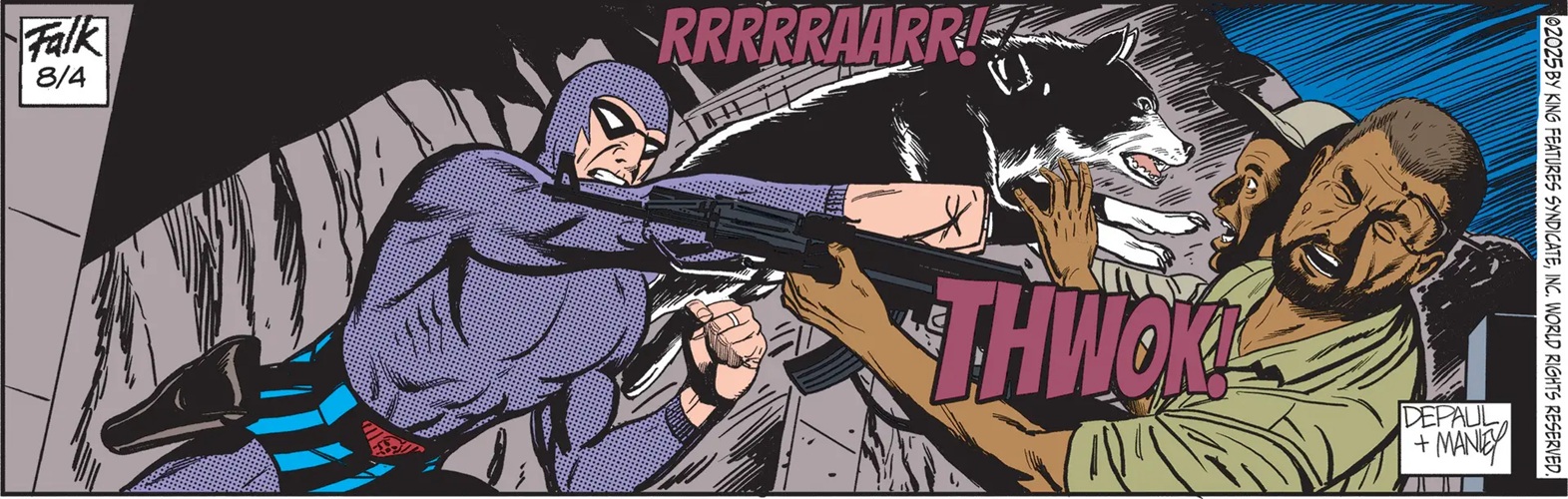 Even after Falk’s death in 1999, the Phantom continued, with writers like Tony DePaul and artists such as Mike Manley (daily strips) and Jeff Weigel (Sunday editions) ensuring the strip’s ongoing presence in newspapers and online platforms. Both the daily and Sunday Phantom comic strips can be read daily on the Comics Kingdom website, the digital comic strip site owned by King Features Syndicate, with the Phantom page found HERE