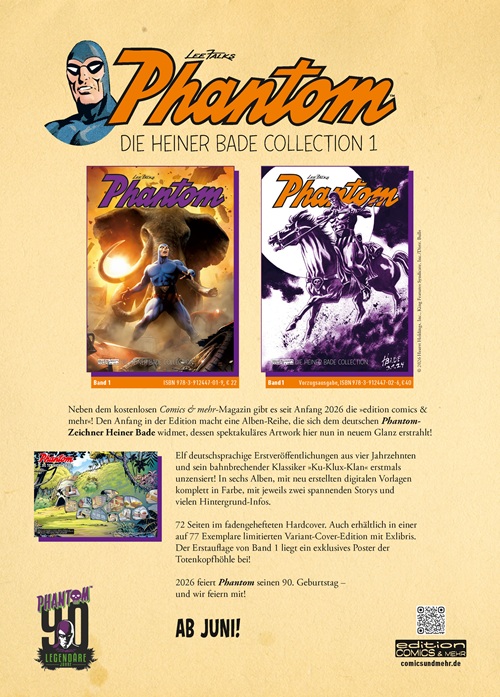 In addition to the free Comics & More magazine, the “edition comics & more!” has been available since the beginning of 2026. The edition begins with a series of albums dedicated to the German Phantom artist Heiner Bade, whose spectacular artwork now shines in new splendor!