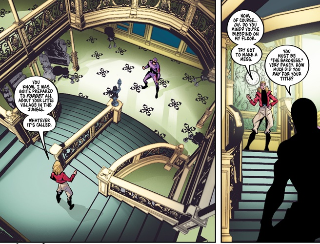 The artistic presentation of this comic is refreshing and modern in style, it manages to capture the majestic beauty of an advisory first seen in Phantom comic adventures in the 1930s. The linework is remarkably clean and expressive, allowing the action sequences to flow with a cinematic quality. Federico Sabbatini and Juancho Velez excel at conveying movement in their panels, be it in the various fight scenes or the explosions taking place around the Phantom. There’s a tangible sense of atmosphere printed on every page, including the shadowy, rugged urban locations, the blue oceanic expanse scenes and the meticulous detailed home mansion of the Baroness, where the final confrontations takes place.