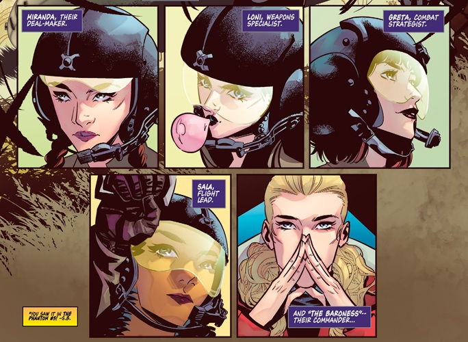 In the realm of classic adventure comics, The Phantom vs. The Sky Band has successfully encapsulated the fundamental qualities that render the experience of engaging with a Phantom adventure enjoyable. This story presents the Phantom in opposition to one of his most formidable and captivating adversaries: a collective of high-flying, all-female pirates referred to as The Sky Band. The band of five air pirates featured in this adventure can be seen below.