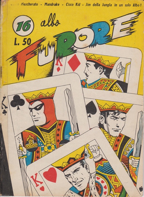 In 1953, Italian publisher Aurelia launched the comic book series ‘Albo Furore’, which featured a collection of popular American comic characters, including the Phantom (known in Italy as L’Uomo Mascherato). Antonio Sciotti contributed to this series by illustrating covers for the initial issues. The series commenced on the 18th of October 1953, and concluded with its 20th issue on 28th of February 1954. Sciotti’s cover art graced the first 17 issues, effectively capturing the essence of the characters and enticing readers.