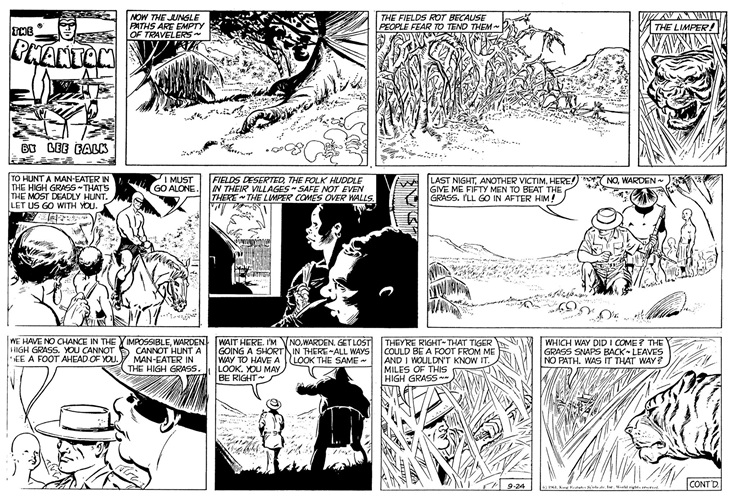 Following the unexpected death of Wilson McCoy, the artist of the Phantom comic strip, in July 1961, there was an immediate need to continue the ongoing stories. Carmine Infantino, a prominent comic book artist, briefly stepped in to assist. It is believed that Infantino contributed to the Sunday strip titled ‘The Limper’, with his artwork appearing on the page dated the 24th of September 1961. However, his involvement was limited, as the majority of the story was completed by Bill Lignante, who took over the strip on the 1st of October 1961, and continued until May 1962.
