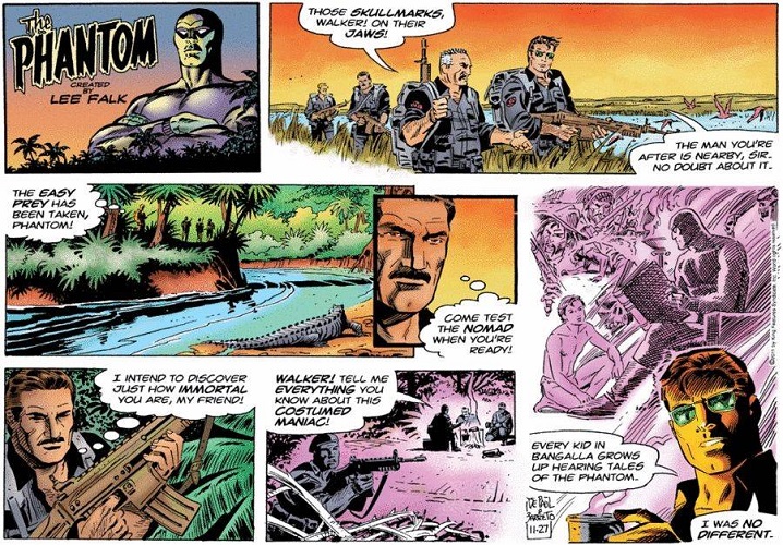 With Paul Ryan retired from illustrating the remainder of the 174th Phantom Sunday strip ‘The Nomad’, to focus on his Daily Phantom strip work, it certainly wouldn’t have been easy for Eduardo to come in mid-way through and continue the art in a seamless transition. Regardless, we as the comic strip reader initially notice very little taking place with the new incoming artist.