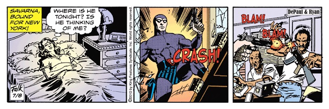 With the Phantom in particular, a special connection had been created, which on some occasions, had see him suggest some ideas to DePaul. To show his commitment, he took about seven hours to draw a single strip, four dedicated to pencils and three to inking. Once the pencil drawing was set, he made shadows and chiaroscuro effects directly with a brush, and then added details, hatching and outlines with a finer brush.