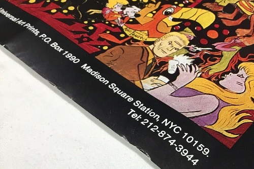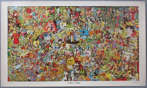 ‘The World of Cartoons‘ is another of Rico’s work, a collage style mural. Created in 1971, the full color lithograph features a large variety of pop culture and comic book characters from Walt Disney, DC, Marvel, Hanna-Barbera, Dr. Seuss Horton, Syndicated Newspaper Comic Strips and so many more. Also, Television/Movie personalities and even singers can be seen in the mural.