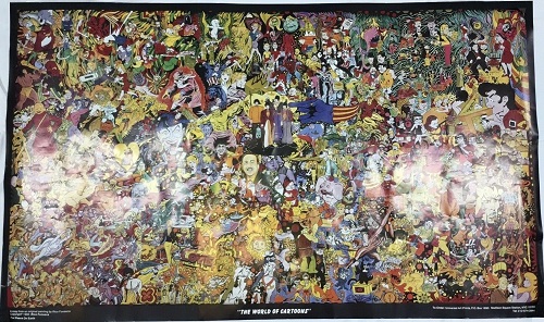 The matt finish lithograph measures 44″ x 26″, surrounded by a white boarder, with the title ‘The World of Cartoons’ seen at the bottom in the center. The reverse of the lithograph is blank.