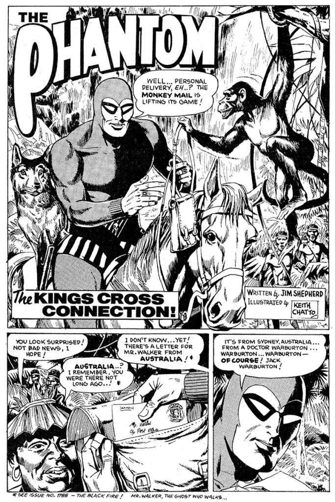 He also drew a lot of covers for Page Publications, where he made the comic ‘Skippy’, based on the television series. In 1972, Keith Chatto started ‘Flame and Ash’ for Flame Magazine and a year later ‘Randy and Cee Cee’ for Fury. In 1977, he took over the Sunday paper version of ‘Air Hawk and the Flying Doctors’ from John Dixon. Keith was the first Australian artist to illustrate a full-length ‘Phantom’ story, ‘Rumble in the Jungle’, which was followed by two more stories, ‘Return of the Singh Brotherhood’ and ‘The Kings Cross Connection’. Other works include ‘Twilight Ranger’, ‘El Lobo’ and ‘Kane’. Keith Chatto left the comics field to become a cameraman and television film producer, and died in 1992 at the age of 88.