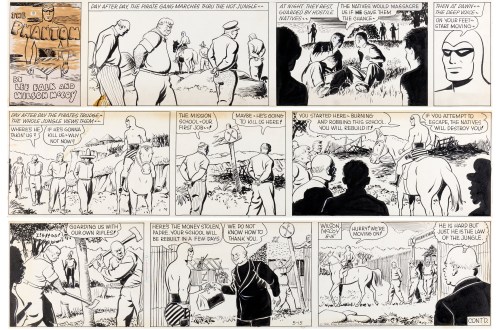 In his artwork for this adventure comic, McCoy could draw from his own experiences as a world traveler, since he had visited far-off jungles and native tribes himself. McCoy continued to produce the strip with creator Lee Falk until his death from a heart attack in 1961, after which it was continued by Bill Lignante for a short while, and then Sy Barry. Wilson McCoy’s popular work on ‘The Phantom’ has been featured in comic books and continues to be reprinted today.