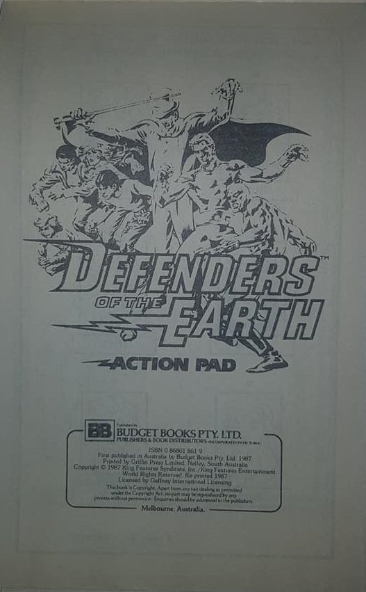 Defenders of the Earth Action Pad – Budget Books – Australia 1987