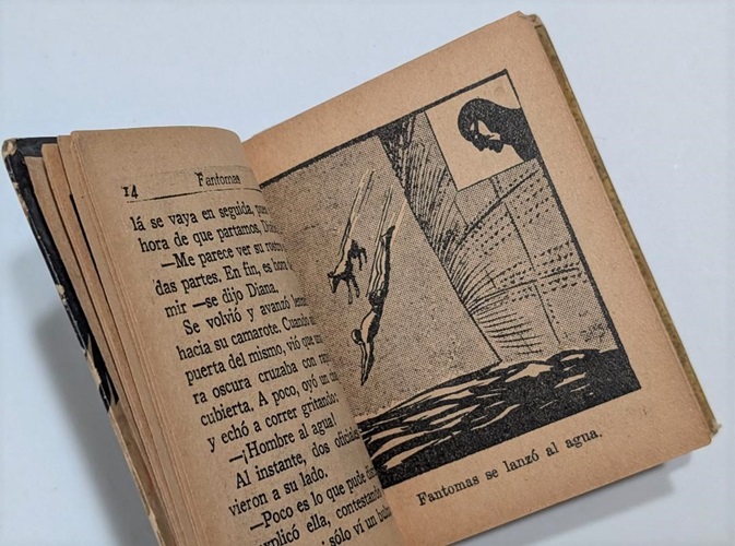 The Phantom makes an appearance in the series in edition number 1149 titled ‘El Regreso de Fantomas’, which translates to ‘The Return of The Phantom’. Containing approximately 280 black and white pages, the hardcover book measures 9cm x 11.5cm. It contains the Phantom story ‘Fishers of Pearls’, written by Lee Falk and illustrated by Ray Moore.