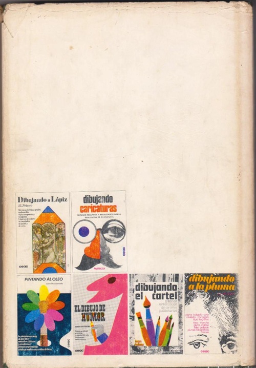 Dibujando Historietas is a hardcover book containing a dust jacket with 169 black and white pages measuring 24cm x 16cm in Spanish text. The front cover contains not only the title of the book, but also a brief description notifying the reader of it’s contents, which translates to, ‘Drawing Comics – Comic book technique and creation. Humorous and adventure comics. Professional resources’.