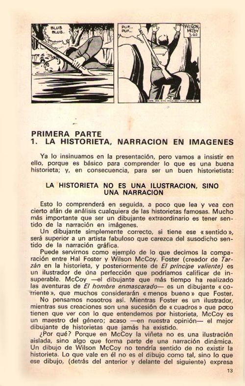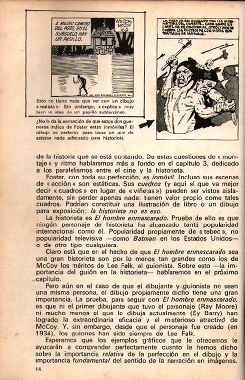 The book is broken down into 11 chapters with an interesting article featuring the Phantom found in Chapter 1 commencing from page 13. The Chapter is titled ‘La Historieta, Narracion En Imagenes’, which translates to ‘The Comic, Narration in Images’. Illustrations from Phantom comic strips by artist Wilson McCoy are compared to illustrations by Hal Foster, with Wilson McCoys work highly regarded for it’s heightened storytelling ability.