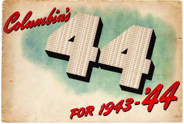 The Exhibitor Herald Book was produced Morgan Lithograph Corporation in Cleveland, Ohio, USA in 1943. They were commissioned as a promotional item, containing information on current release and upcoming serial movies featured in theaters at the time, plus the various actors found in these serials, all produced by film company Columbia Pictures.