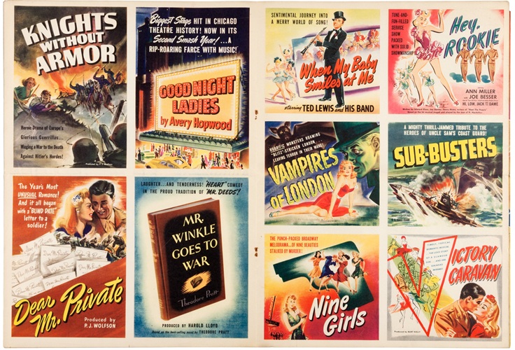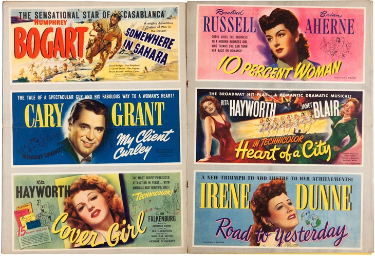 Inside the Exhibitor Herald Book are also 7″ X 15″ knockout photos in poster form for ‘My Friend Curley’ with Cary Grant, Rita Hayworth in ‘Cover Girl’, Cary Grant and Rita Hayworth in ‘Gone are the Days’, ‘Vampires of London’, and ‘Beyond the Grave’.