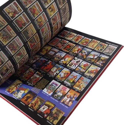 The hardcover album style book contains 144 pages in both color and black and white, measuring 26.5cm x 36cm in Portuguese text. The book is written by communication professor and researcher Marco Aurélio Lucchetti and edited by Franco de Rosa. Within the 17 chapters, we find information about the various comic book series published in Brazil plus articles and interviews with artists who made a contribution to the Phantom in Brazil, including Valmir Amaral and Gutemberg Monteiro who produced stories for Rio Gráfica Editora.