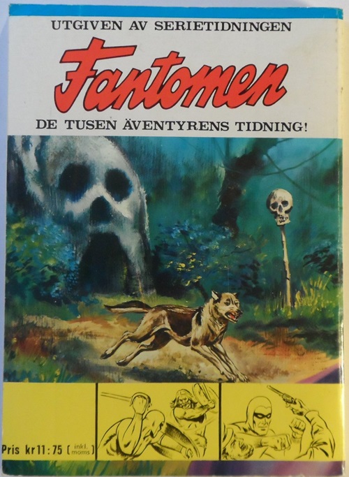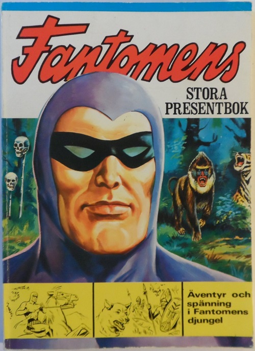 Fantomens Stora Presentbok is modeled after The Phantom Annual hardcover book published by World Distributors Limited in the UK in 1968. The UK version contains less pages, 68 pages in full color, also featuring general knowledge articles, comic book stories, comic strips and a variety of activity pages ranging from crossword puzzles to animal quizzes.