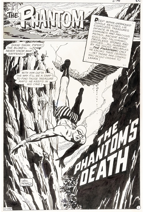 Aparo’s attention to detail was impressive. He carefully depicted the Phantom’s costume, the jungles of Bangalla, and the unique creatures of this mysterious land. His backgrounds were vivid, enhancing the stories. A sample of his comic strip work can be seen below.