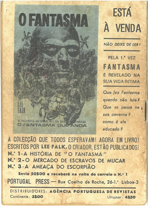 Several of the publications produced by Portugal Press caried advertisements for the O Fantasma Novel Book series on the outside back covers. A couple of examples can be seen below.