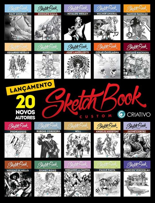 The Sketchbook Custom collection was published by Editora Criativo in Brazil in 2007. The series contains 20 books, each featuring a comic book artist, showcasing their sketches and final artworks in various stages, styles and techniques throughout their career.
