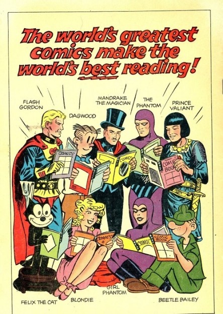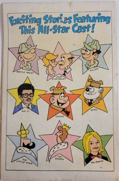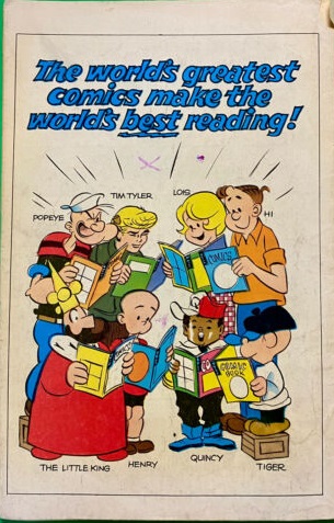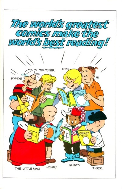Issue #1 – Tiger, #2 – Beetle Baily, #3 – Blondie, #4 – Tim Tyler’s Luck, #5 – Quincy, #6 The Phantom/Girl Phantom, #7 – Popeye, #8 – Prince valiant, #9 – Hagar, #10 – Redeye, #11 – Blondie, #12 – Popeye, #13 – Beetle Bailey, #14 – Quincy, #15 – The Phantom, #16 – Flash Gordon.