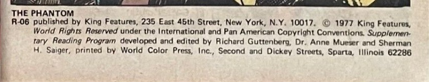 The 16 comic books produced for The King Comics Reading Library Supplementary Reading Program in 1977 can be seen below, broken down into ‘Library #1’ and ‘Library #2’. The Phantom comic strips are featured in editions number R-06 and R-16, plus on the covers of these editions. Additionally, he appears on 5 back covers.