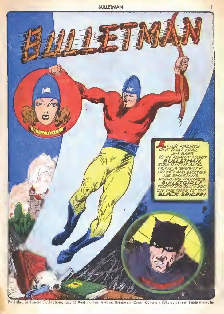 Bulletman and Bulletgirl are fictional superheros originally published by Fawcett Comics. Created by Bill Parker and Jon Smalle, Bulletman first appeared in Nickel Comics #1, May 1940.