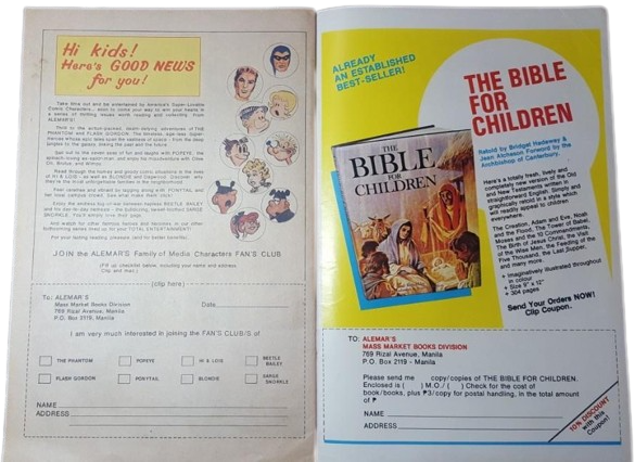 The mail-away coupon seen in the advertisement can be seen below, with a postal address located in Manila, Philippines. Selection boxes are located near the names of the comic book characters you wish to be a club member of, with either one or multiple characters available for selection.