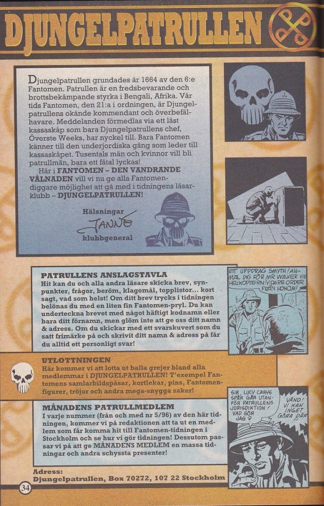 In issue 1 of Den Vandrande Vålnaden, we see Djungelpatrullen club being launched by the publisher as can be seen below.
