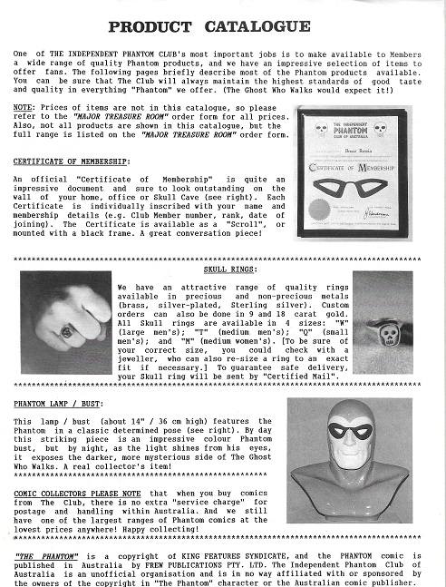 For the 14+ years that The Independent Phantom Club Of Australia existed, advertisements in Frew Phantom comics were seen either on the back of an issue or within the comic, from number 736 to number 928, a total of 212 issues consecutively.