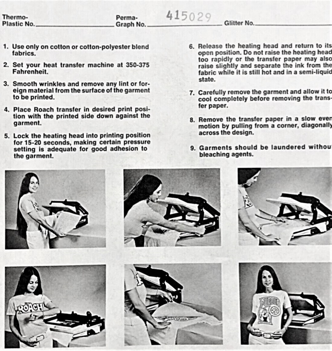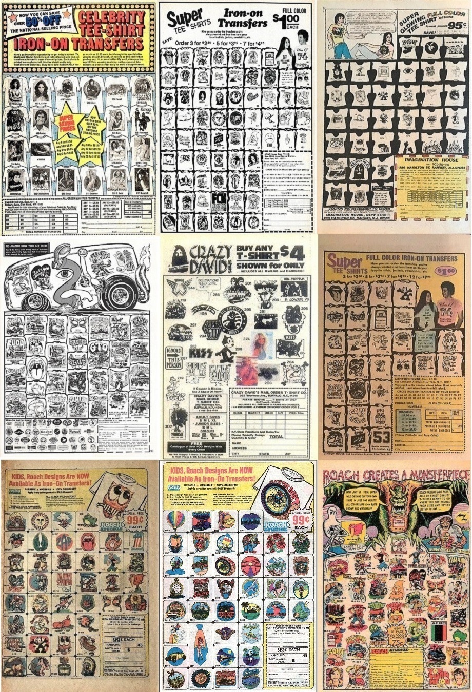 The 1970’s marked the ‘great boom’ for iron-on transfers in the United States and abroad. Literally dozens of US small business jumped onto the iron-on t-shirt ‘band-wagon’. The plethora of transfer subjects were endless, from movies to movie stars, from T.V shows to teenage heartthrobs, hot rods to booze 420, from humor to horror; no matter what your taste was, there was something for you. The majority of such businesses at that time were primarily located in New York City, NY.