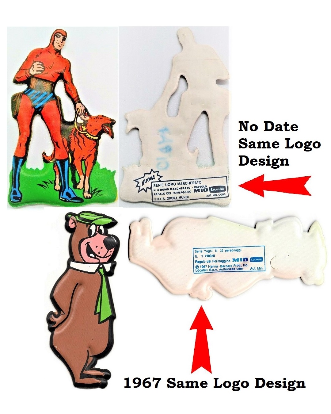 The first being the MIO Locatelli logo which was frequently changed; the 1967-1972 logo coinciding with the trademark design on the back of the Phantom sticker set (as seen below on the left). The second is via a variety of advertisements found in Italian Magazines (as seen below on the right).