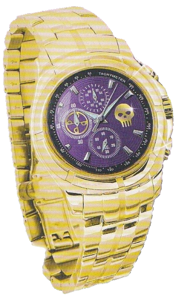 The Phantom 75th Anniversary Watch is made of solid stainless steel with a ‘golden’ finish containing 3 sub-dials for seconds, minutes and hours. We see the Phantom’s Skull and Good ring marks on the face of the watch, again in a ‘golden’ finish sitting on a purple background. The wording ‘The Ghost Who Walks’ are engraved on the side of the watch case. On the back of the watch case are engraved the words, ‘The Phantom – 75th Anniversary Deluxe Edition’, with an individual edition number (from 1 to 500).