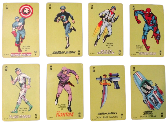 Due to the array of comic book characters found in the Captain Action Card Game, we see 4 copyright holders recognized, Ideal Toy Co., Marvel Comic Group, National Newspaper Syndicate Inc. and King Features Syndicate.