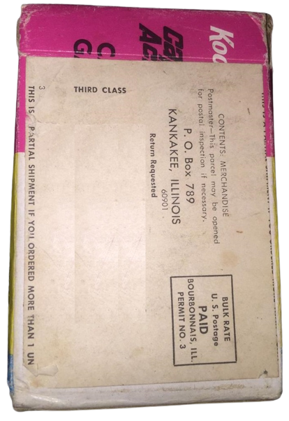 Kool-Pops were a frozen food item, described on the packaging as ‘Pasteurized Pop Bars’, sold in a box of 8 with a variety of flavors found in the one box, with the box measuring 5.75” x 7.5”. A promotion was offered whereby if 3 Kool-Pops box-tops are mailed to an address in Kankakee, Illinois, USA, with a cut-out coupon found at the rear of the box, then a set of Captain Action Card Game would be sent.